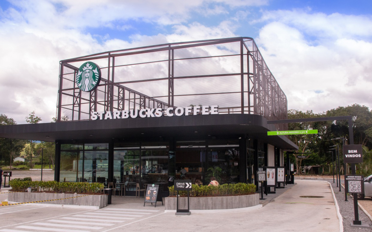 As Ripas Concreto Abstrato revestem a fachada e parte do interior da mais nova loja Starbucks, recém inaugurada em Roseira, interior de São Paulo.